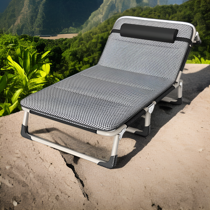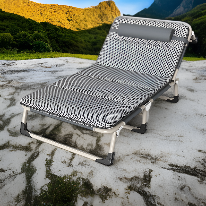 Outdoor three-fold no-assembly iron tube bed with pillow